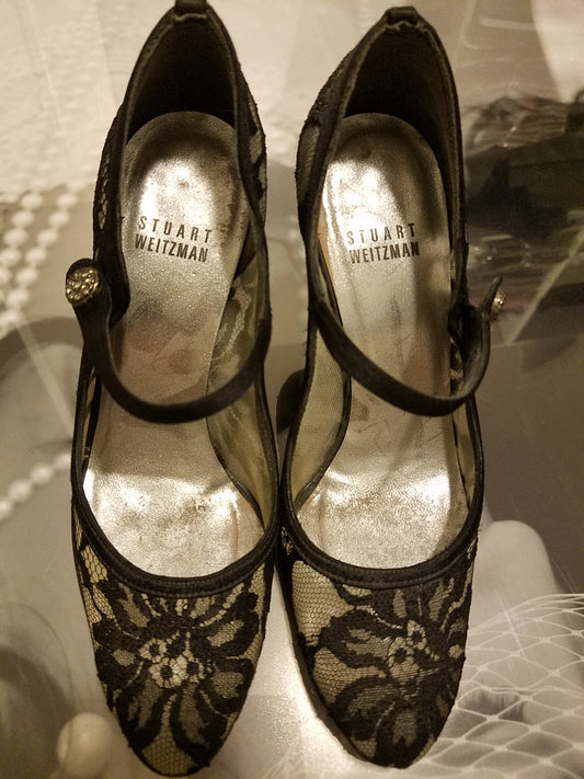 Stuart Weitzman Black Lace Mary Jane Pumps