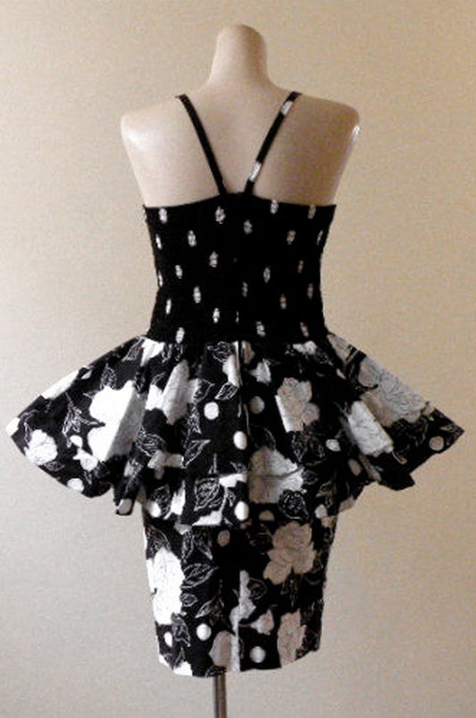 Vintage Robbie Bee Floral Polka Dot Peplum Dress